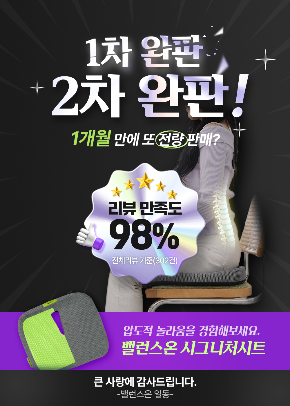 밸런스온 시그니처 시트, 출시 두 달 만에 1·2차 전량 완판… 리뷰 만족도 98% 호평 속 품절 행진 지속